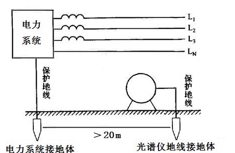 1.2 直讀光譜接地線要遠(yuǎn)離大功率電力或電氣設(shè)備的接地體,所設(shè)的接地體距離工頻低壓交流供電系統(tǒng)的接地體不應(yīng)小于20米。