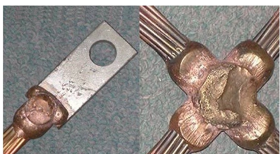 所有的連接均采用搭接焊。銅帶的搭接長度為銅帶寬度的兩倍,并應(yīng)焊三個棱邊。