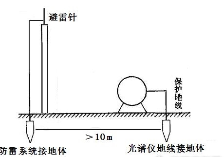 直讀光譜儀器的接地線不能和避雷針接地線接在一起,必須單獨接地線。接地電阻應(yīng)小于1Ω,最大不超過3Ω(有些廠家小于4Ω),否則不能進(jìn)行儀器的正常安裝。