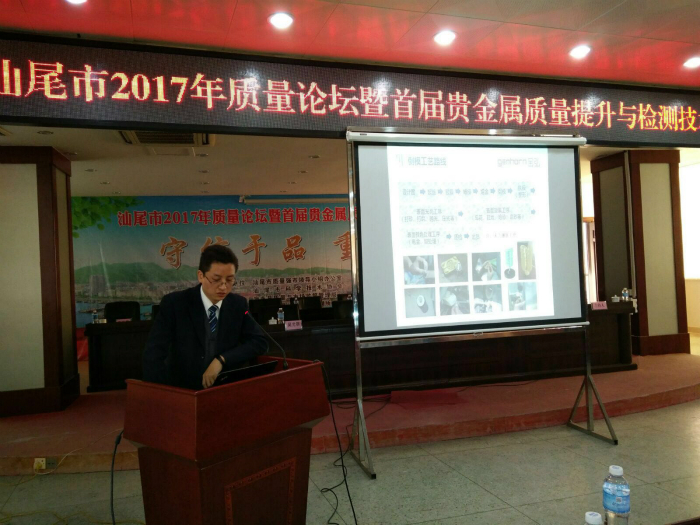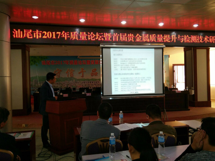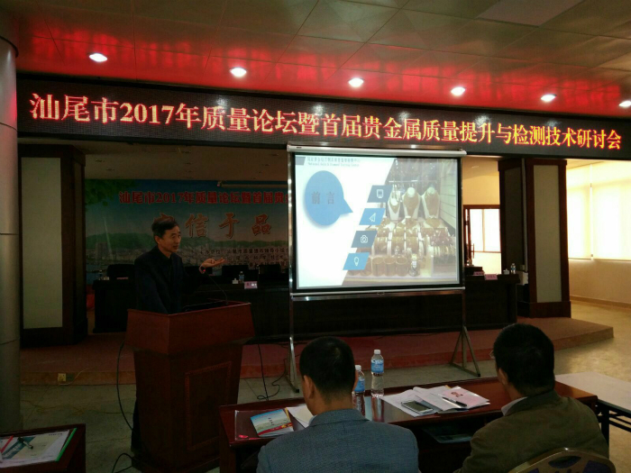 12月6日下午,汕尾市2017 年質量論壇暨首屆貴金屬質量提升及檢測技術研討會在梅隴鎮人民政府會議室舉行。深圳華普通用受邀請參加了此次研討會。研討會由汕尾市質量強市領導小組辦公室、汕尾市質量技術監督局、汕尾市科學技術協會、海豐縣人民政府主辦,海豐縣市場與質量監督管理局、海豐縣梅隴鎮人民政府、汕尾市質量計量監督檢測所、汕尾市金銀珠寶首飾行業協會協辦,汕尾市質量技術協會承辦。汕尾市科協常務副主席范志能、汕尾市質監局副局長莊振雄、海豐縣人民政府副縣長吳光群、梅隴鎮鎮委書記郭立堅、海豐縣市場與質量監督管理局陳健雄以及應邀出席的三位專家,國家黃金鉆石制品質量監督檢驗中心祝培明教授、深圳金弘珠寶副總經理周鵬老師、德國斯派克華南大區總經理楊志遠老師參加了本次研討會。汕尾市民網、汕尾電視臺、汕尾日報社、汕尾《東岸》雜志社和汕尾眾信廣告傳媒有限公司作為本次研討會的新聞媒體支持。