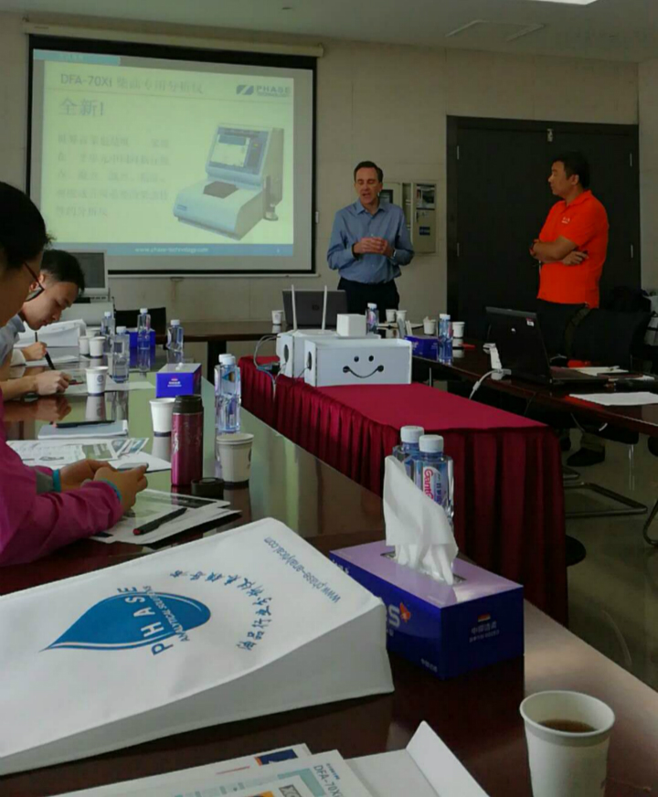 2018年5月11日,深圳華普通用科技有限公司聯(lián)合加拿大PHASE公司在深圳計(jì)量質(zhì)量檢測(cè)研究院舉行柴油檢測(cè)技術(shù)交流會(huì),參加會(huì)議有深圳計(jì)量質(zhì)量檢測(cè)研究院,廣州能源研究院,中石化黃埔油庫,原廣州出入境檢驗(yàn)檢疫局等用戶單位專家,深圳計(jì)量院趙彥所長在會(huì)上介紹了柴油檢測(cè)技術(shù)的新進(jìn)展。另外,加拿大PHASE公司CEO Chars和中國首席代表齊跡先生介紹了PHASE公司最新柴油傾點(diǎn),凝點(diǎn),濁點(diǎn),粘度,密度五功能分析儀技術(shù)。